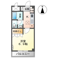 - 1K 洋室 6.9畳 1室 K 2.0畳 1室