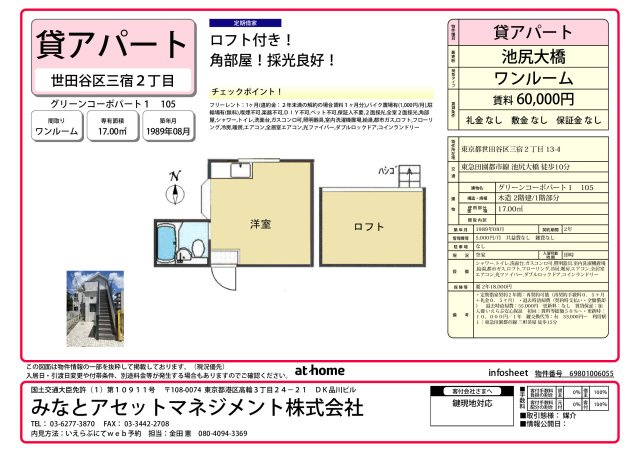 | 専有面積/間取り | 17.00㎡ / 1R |