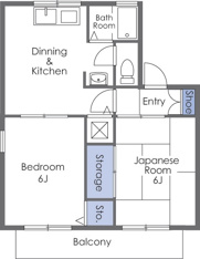 - 2DK 洋室 6.0畳 和室 6.0畳 DK 6.0畳